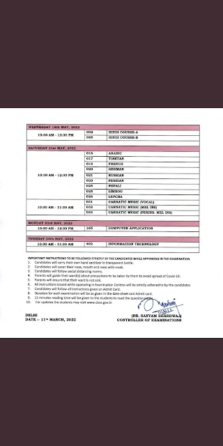 Exams Datesheet for Class-12 on Friday 11th March, 2022.